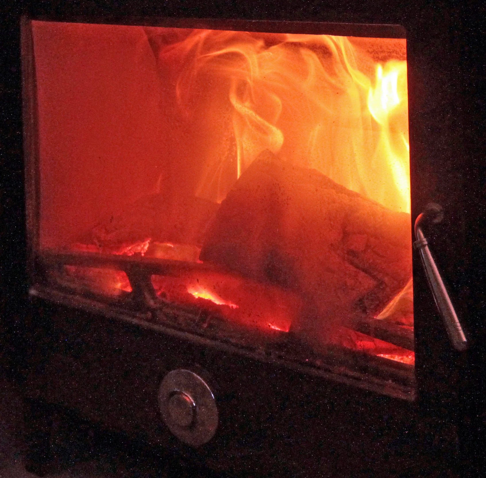 When burned at full-tilt, timber emits wood gas which ignites to raise the temperature/efficiency even higher